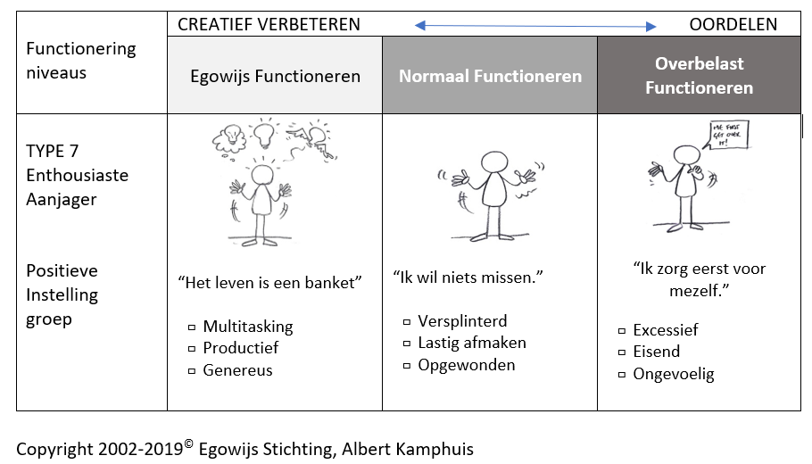 In beweging brengen vraagt veel nadenken over het afstemmen van ideeën waarin we geloven met de realiteit en de mogelijkheden ervan. Als we naar de onderstaande tabel kijken, zien we wat bijvoorbeeld de gedragspatronen van Type 7 kunnen zijn.